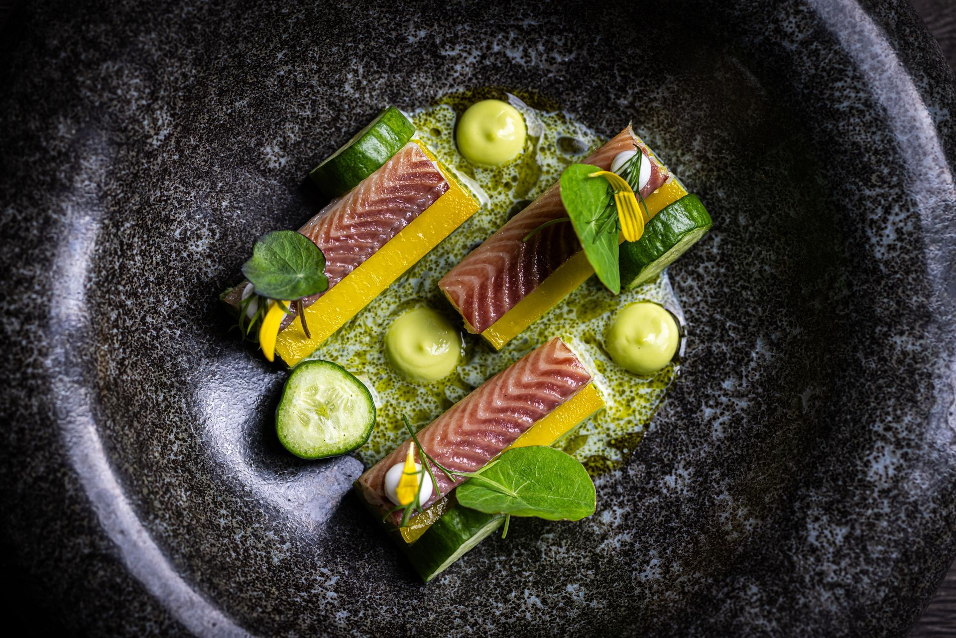 aperitief bite - amuses - champagne - lokaal brood met eigen boter - 6-gangen menu - kaviaar gerecht -